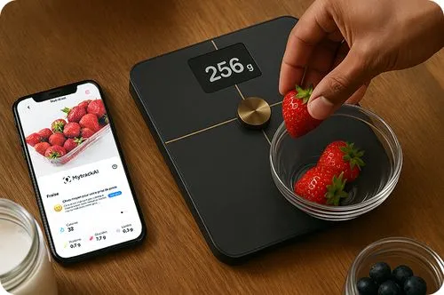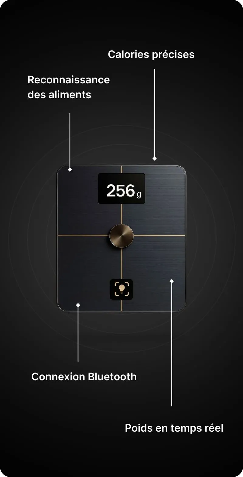 Pèse ton plat, prends une photo, et obtiens instantanément les calories exactes grâce à notre IA.